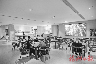 鼓山游客中心内的免费休息区。本报记者 包华摄